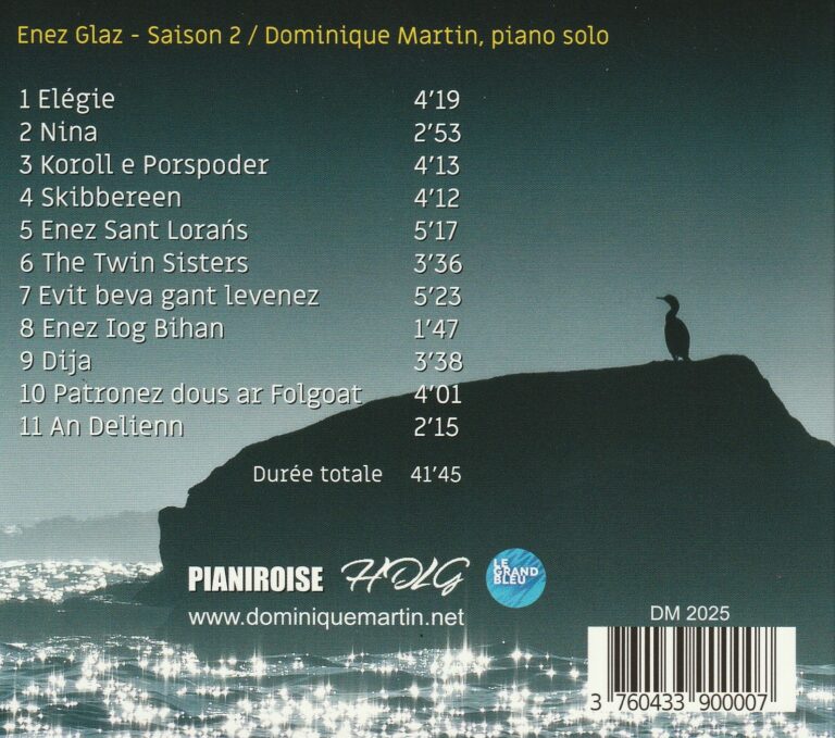 11 arrangements pour piano de thèmes traditionnels de Bretagne, d’Irlande et d’ Ecosse mais aussi 4 compositions dont 3 co-écrites avec Didier Squiban.